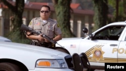 Между тем полиция усилила охрану домов и членов семей лиц, которые, как полагают власти, могут стать следующими жертвами бывшего полицейского.