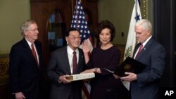 Элейн Чао стала новым министром транспорта США сенат утвердил во вторник ее кандидатуру. В тот же вечер Чао привел к присяге вице-президент США Майк Пенс.