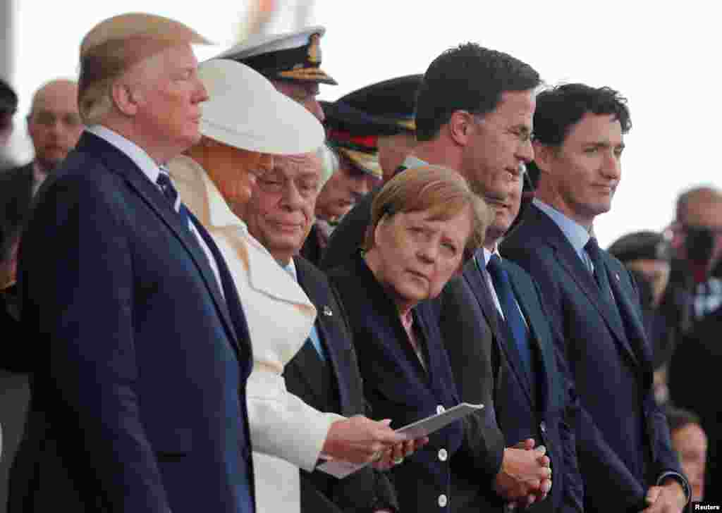 К Трампу, королеве Елизавете и британскому премьер-министру Терезе Мэй присоединились премьер-министр Канады Джастин Трюдо, президент Франции Эммануэль Макрон и канцлер Германии Ангела Меркель