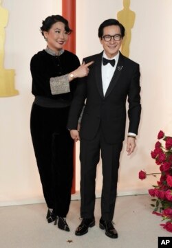 На красной дорожке - Ке Хью Кван, чей триумфальный камбэк спустя десятилетия привел его к "Оскару". У него есть неплохие шансы сегодня забрать номинацию в "Лучшем актере второго плана". Сразу после него слово взял актерский дуэт Брендана Глисона и Колина Фаррелла - после их культового появления в "Залечь на дно в Брюгге", ирландцы вновь появились вместе на съемочной площадке в "Банши Инишерина".