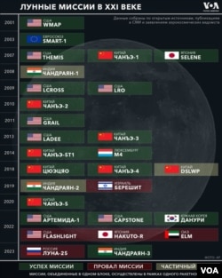 Подробнее о лунных миссиях в XXI веке – в графике «Голоса Америки».