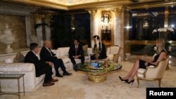 На фотографиях, сделанных внутри богато отделанного зала для встреч в «Башне Трампа», видны Абэ в сопровождении только переводчика и Трамп в компании дочери Иванки и ее мужа и советника избранного президента – Джэреда Кушнера, а также отставного генерала Майкла Флинна, который станет помощником по национальной безопасности Трампа.