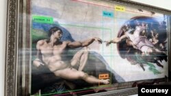 На выходе с публикой прощается огромное ИИ-полотно «Генезис: и было слово» – знаменитое «Сотворение Адама» Микеланджело дается таким, каким его воспринимает компьютерное зрение, распознающее образы. Автор работы считает, что строка из Библии «Вначале было слово» для больших языковых моделей может означать буквально то же самое, что и для религиозно мыслящей части человечества: «первая строка Библии о том, как они были созданы».
