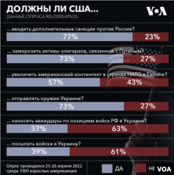 В конце апреля Reuters и Ipsos исследовали отношение американцев к другим способам противодействия российской агрессии.