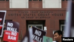 В понедельник утром три судьи апелляционного суда Девятого округа заслушали в Сиэтле аргументы сторон после того, как правительство опротестовало решение федерального судьи на Гавайях, заблокировавшего ограничения основного положения, подписанного Трампом указа 6 марта: запрет на въезд и положения о приостановке приема беженцев на 120 дней.