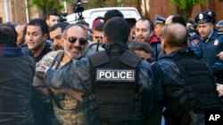 По официальным данным, в последние дни в столице Армении было задержано более 180 человек, участвовавших в простестах против назначения бывшего президента страны Сержа Саркисяна на пост премьер-министра.