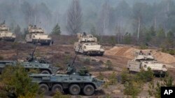 Возглавляемая Германией боевая группа НАТО в Литве устраивает показательные маневры для высокопоставленных гостей из Европы. После российской аннексии Крыма НАТО согласилось направить войска в Литву, а также Эстонию, Латвию и Польшу, чтобы сдержать потенциальную российскую агрессию.