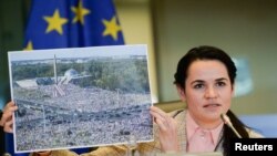 Европарламент принял решение присудить ежегодную премию имени Андрея Сахарова "За свободу мысли" белорусской оппозиции, представленной созданным после выборов президента Беларуси Координационным советом.