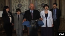 «Для нас большая честь принимать сегодня семью Магнитского в столице США. Мы приветствуем его маму, жену и сына. Мы аплодируем их мужеству – их сын, муж и отец совершил гражданский подвиг, поступив так, как нам кажется должен поступать каждый патриот своей страны. Работа, которую проводит семья Магнитских предельно важна. Своим присутствием здесь сегодня они придали проблеме живое человеческое лицо. Статистика важна, и мы знаем, что тысячи людей стали жертвами подобных нарушений прав человека, но теперь эти нарушения олицетворены. Глядя на эту красивую семью, на его юного сына – международное сообщество осознаёт, что случившееся в России не может пройти безнаказанно, именно поэтому так важно их присутствие сегодня здесь. Мы хотим, чтобы вы — семья Магнитского знали – благодаря мужеству вашего сына, мужа и отца происходят хорошие перемены, вы спасаете жизни, вы придаете мужество другим. Я должен сказать, что получаю множество писем от граждан России, которые говорят мне, что Россия может и должна стать лучше. И ради будущего России, она должна решить эту проблему. Вы помогли нам поднять международные стандарты до более высокого уровня, узаконить требование, чтобы каждая страна призывала к ответу тех своих граждан, которые виноваты в нарушениях прав человека, и если страны не будут соблюдать эти требования, тогда международное сообщество не позволит им легализовать действия подобных личностей».