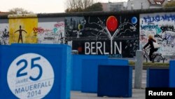 В этот уикенд на том месте, где когда-то высилась мрачная бетонная стена, протянется цепочка подсвеченных воздушных шаров. Предстоят массовые уличные гуляния, напоминающие те, что охватили Берлин 25 лет назад, на заре новой главы в истории Германии.