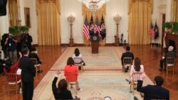 Из-за ограничений, связанных с пандемией, в зале присутствуют всего несколько десятков журналистов, которых отобрала Ассоциация корреспондентов Белого дома.