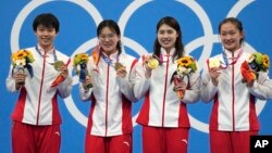 Победительницами стали спортсменки из Китая Ян Цзюньсюань, Чжан Юйфэй, Ли Бинцзе и Тан Мухань, преодолевшие дистанцию за 7 минут 40,33 секунды.