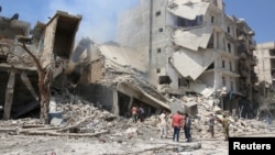 Правозащитники также сообщают, что в результате еще одного воздушного удара были убиты 15 и ранены 20 мирных жителей в окрестностях города Аль-Амарна.