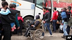 Около трех тысяч человек подготовлены к эвакуации из четырех заблокированных населенных пунктов на севере Сирии в рамках соглашения, действие которого было приостановлено примерно на сутки из-за взрыва вблизи колонны, перевозивших эвакуируемых.