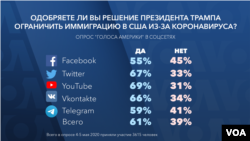 В день эфира мы провели также опрос на страницах Русской службы «Голоса Америки» в соцсетях, чтобы узнать, как русскоязычная аудитория из разных стран мира воспринимает указ президента США. Как выяснилось, 61% принявших участие в голосовании поддерживает временный запрет на иммиграцию. 39% респондентов ответили, что не поддерживают данное решение главы Белого дома.