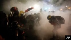 Полиция квалифицировала происходящее как гражданские беспорядки и примерно в 1:20 ночи приказала людям покинуть территорию вокруг суда под угрозой ареста, заявив в Твиттере, что насилие создало «серьезную угрозу» для общественности. Примерно через 20 минут федеральные офицеры и местная полиция попытались очистить территорию и применили слезоточивый газ, но демонстранты оставались на месте после 2:30, сформировав шеренги на перекрестках и держа самодельные щиты, в то время как полиция патрулировала и перекрывала прилегающие к району кварталы. Были произведены многочисленные аресты, но точное их число пока неизвестно.