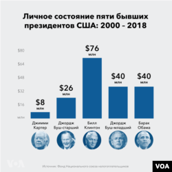 Начиная с 2000 года из кармана налогоплательщиков на содержание бывших президентов, без учета расходов на охрану, было потрачено почти 68 млн долларов, подсчитали в Национальном союзе налогоплательщиков.