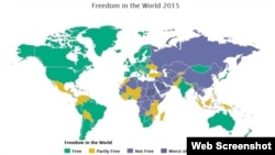 Правозащитная организация Freedom House опубликовала свой ежегодный доклад «Страны переходного периода-2015», в котором анализируется ситуация в 29 государствах гигантского региона – от Центральной Европы до Центральной Азии.