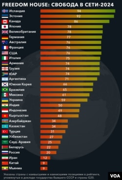 Уровень свободы интернета во всем мире продолжает последовательно снижаться в течение последних 14 лет, отмечено в ежегодном докладе организации Freedom House под названием «Свобода в сети 2024: Борьба за доверие в Интернете».