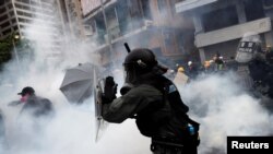 Гонконгская полиция применила в субботу слезоточивый газ для разгона протестов. Жители города вышли сегодня на митинг недалеко от границы с Китаем.