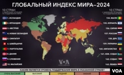 В июне «Голос Америки» рассказывал о другом исследовании Института экономики и мира — ежегодном «Глобальном индексе мира», оценивающим, насколько мирной можно считать ситуацию в 163 странах.