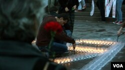 В память о них на мраморных плитах из свечей они выложили имя исчезнувшего тринадцать лет назад журналиста Гонгадзе – «Гия» и сложили из букв слоган «Безнаказанность – убивает».