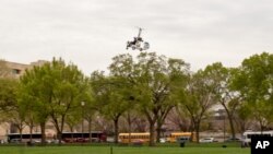 Туристы с удивлением наблюдали за тем, как одноместный вертолет, или автожир, приземлился прямо на лужайке в нескольких сотнях метров от Капитолия. Полицейские немедленно оцепили часть прилегающей к зданию территории, а собаки и робот начали обыскивать вертолет на наличие взрывчатки.