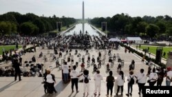 Мероприятие началось на ступенях Мемориала Линкольна, а через несколько часов демонстранты пройдут маршем к Мемориалу Мартина Лютера Кинга-младшего.