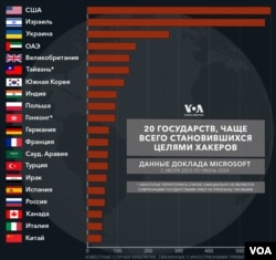 Соединенные Штаты остаются наиболее популярной целью хакеров, связанных с другими государствами. Microsoft отмечает, что это связано как с большой ролью Вашингтона в мировой политике, так и с масштабами американских исследований и разработок (в Microsoft также объясняют это большим представительством США в клиентской базе компании).