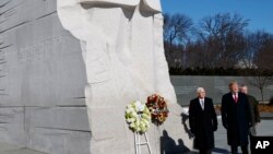 Президент Трамп и вице-президент Пенс возложили венок к подножию памятника Кингу.