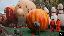 Традиционный парад по случаю Дня благодарения, устраиваемый универмагом Macy's в Нью-Йорке, в этом году пройдет в условиях морозной погоды и сильного ветра.