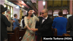 А в конце церемонии со сцены, конечно, звучит знаменитое эллингтоновское “It don’t mean a thing”. И с первых нот становится понятно, что произойдет в следующие минуты. «Калейдоскоп» приходит в движение, люди в разноцветных одеждах поднимаются и... начинают танцевать. Еще несколько секунд – и танцует вся церковь. А Королева смотрит на них с портрета, улыбается и как бы повторяет свой девиз: «Keep swinging!»