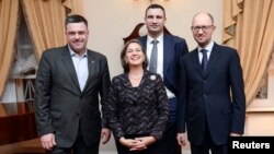 На пресс-конференции заместитель госсекретаря США рассказала, что широко обсуждала этот вопрос на международном уровне. По ее словам, ее собеседники готовы оказать помощь «Украине, быстро продвигающейся в направлении соблюдения прав человека и достоинства, обеспечения деэскалации напряжения и политической реформы».