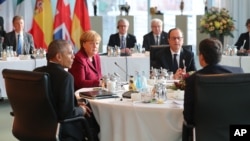 Обама и другие лидеры в пятницу договорились оставить в силе санкции в отношении России, наложенные на нее в связи с конфликтом на востоке Украины. Они призвали Москву соблюдать Минские соглашения и обеспечить безопасность, необходимую для проведения выборов.