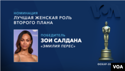 Для Салданы этот "Оскар" — первый (если не считать ее участия в оскароносных "Аватарах" и сегодняшней номинации в качестве исполнительницы песни "El Mal" из все того же фильма "Эмилия Перес").