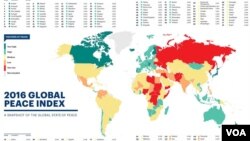 «Мир увяз в трясине конфликта на Ближнем Востоке, политических потрясениях в США, потоках беженцев и терроризме в Европе», – заявил Стив Киллелеа, основатель сиднейского Института экономики и мира, который публикует этот индекс.