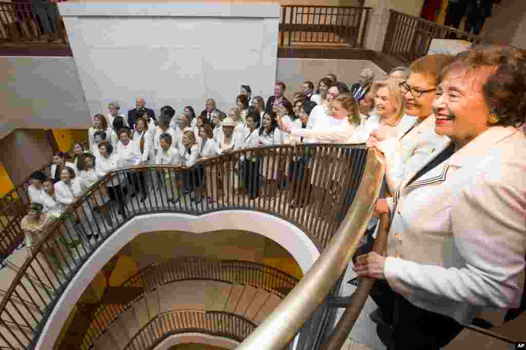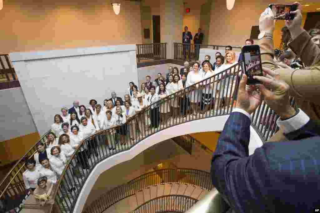 В день выступления президента США Дональда Трампа в Конгрессе с речью "О положении дел в стране" несколько десятков женщин-законодателей оделись в белое. Как правило, конгрессмены одеваются в цвета своих партий.
