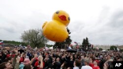 Еще задолго до расследований ФБК желтая утка стала главным символом протестов в Белграде, когда в 2015 году жители Сербии протестовали против предложенной властями программы развития прибрежных районов.