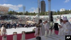 В субботу папа римский Франциск провел мессу под открытым небом в Грузии, в рамках Миссии мира по Кавказскому региону, которые разрывается между Россией и Западом.