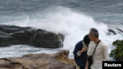Мощный тайфун обрушился на главный японский остров Хонсю, угрожая западным и центральным районам страны проливными дождями и сильными ветрами.