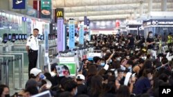 Работа Гонконгского международного аэропорта серьезно нарушена, заявило во вторник руководство аэропорта. Между тем вечером спецподразделения полиции в ряде случаев применили против протестующих перцовые баллончики.