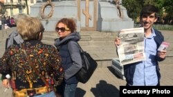 МОСКВА – 14 мая в центре российской столицы прошла акция солидарности российских журналистов с уволенными накануне из медиа-холдинга РБК шеф-редактора Елизаветы Осетинской, главного редактора агентства РБК Романа Баданина и главного редактора газеты РБК Максима Солюса.