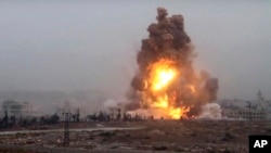 Информационное агентство сирийское оппозиции Thiqa в субботу разместило в Интернете видео, на котором показано попадание ракеты в Датар Изза, город в северо-западной провинции Алеппо.