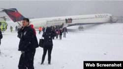 Самолет авиакомпании Delta Air Lines со 125 пассажирами и пятью членами и экипажа на борту сошел со взлетно-посадочной полосы в нью-йоркском аэропорту Ла Гуардия Инцидент имел место в четверг 6 марта во время сильного снегопада. Никто серьезно не пострадал.