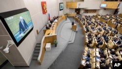 В российский парламент в среду был внесен законопроект, предусматривающий лишение свободы на срок до десяти лет за действия, подрывающие территориальную целостность страны.