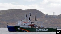 МОСКВА – Суд в Мурманске арестовал 14 человек из 30, задержанных на судне Арктик Санрайз (Arctic Sunrise), которое принадлежит международной экологической организации Гринпис (Greenpeace). Российскими властями активисты были задержаны за попытку провести акцию протеста на нефтедобывающей платформе «Приразломная», принадлежащей газовому монополисту «Газпрому». Возбуждено уголовное дело по статье «пиратство».