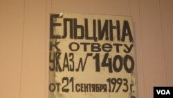 С этой целью устроители экспозиции решили восстановить предысторию штурма Белого дома, иными словами - напомнили политическую подоплёку событий.