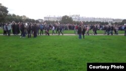 Между тем, число участников акции увеличивалось. Неподалеку от гранитных пилонов, ограждающих Вечный огонь, корреспондент «Голоса Америки» заметила социолога и публициста Игоря Чубайса. Он сказал, что приехал в свой родной город на встречу выпускников своего курса, но не смог не зайти на Марсово поле, чтобы поддержать участников акции.
