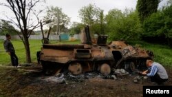Во вторник 14 мая на востоке Украины продолжались боевые действия. Министр обороны Украины сообщил о гибели семерых военнослужащих правительственных войск, попавших в засаду под Краматорском. Сообщения об этом поступили всего через два дня после обстрела участников акции протеста силовиками в Красноармейске во время состоявшегося в воскресенье референдума о статусе региона. В распоряжении «Голоса Америки» оказалась видеозапись, на которой видно, как люди в форме стреляют по безоружной толпе.