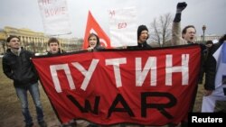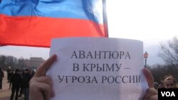 САНКТ-ПЕТЕРБУРГ – На Марсовом поле прошел митинг против российской аннексии Крыма и против военного вмешательства извне в украинскую политику.